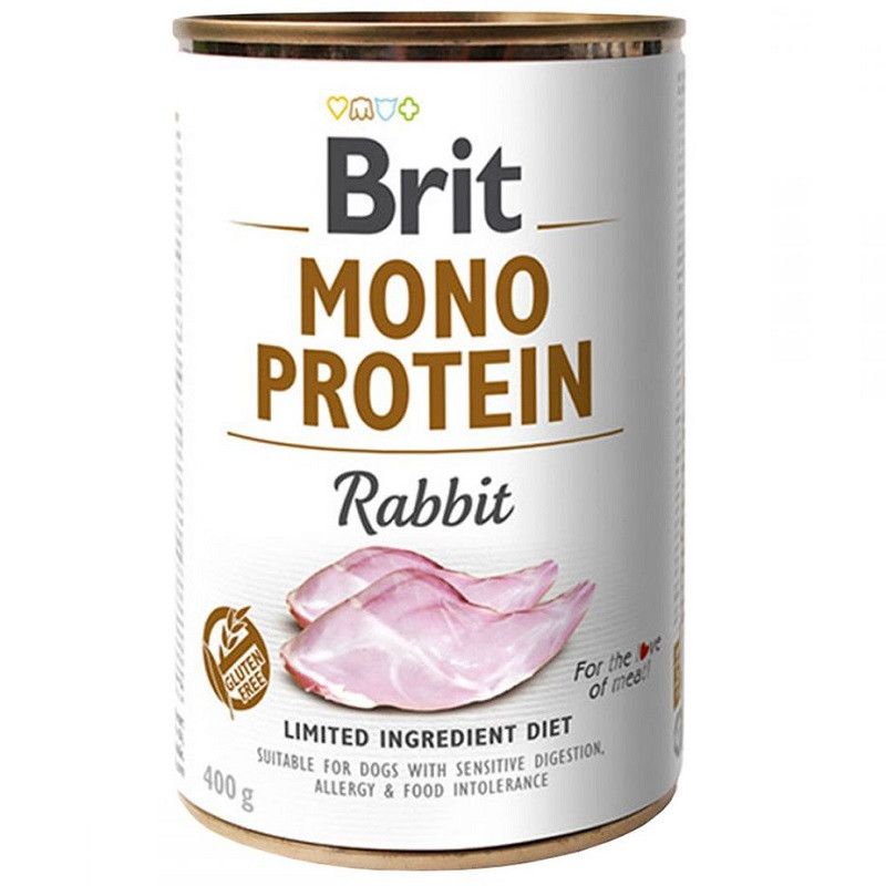 Монопротеїновий вологий корм із м'яса кролика для собак із чутливим травленням. Являє собою живлення з одним типом м'яса, що неабияк знижує ймовірність виникнення у вихованця алергічної реакції на їжу.