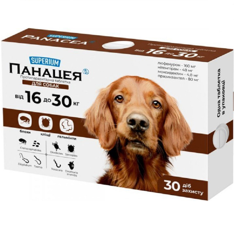 Таблетка для собак 16-30 кг Суперіум Панацея захист від паразитів No1 Superium