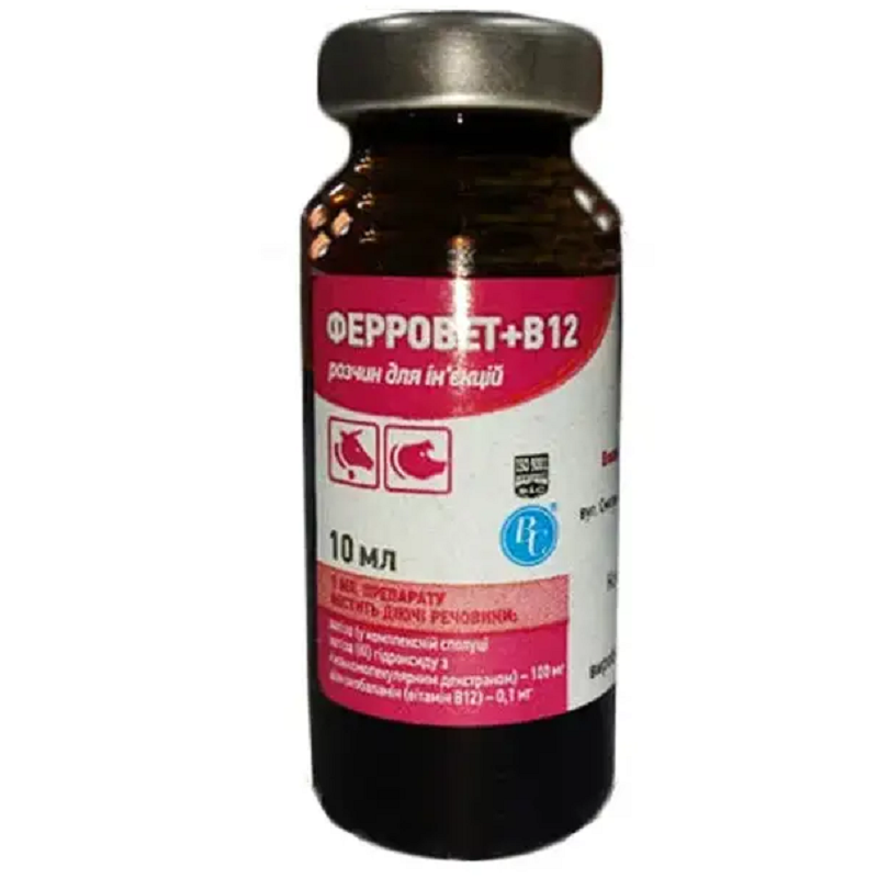 Розчин для ін'єкцій Феррівет+В12 у разі залізодефіцитної анемії у тварин 10 мл Ветсинтез термін 12.2024